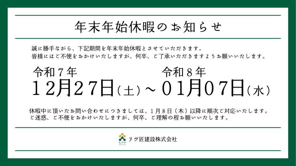 年末年始休暇のお知らせ